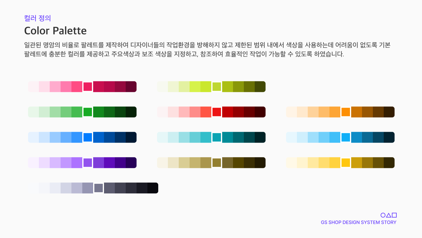 GS SHOP 디자인 시스템은 예외 없이 Color System에 정의된 색상으로 모두 매핑할 수 있습니다.