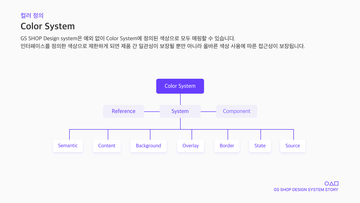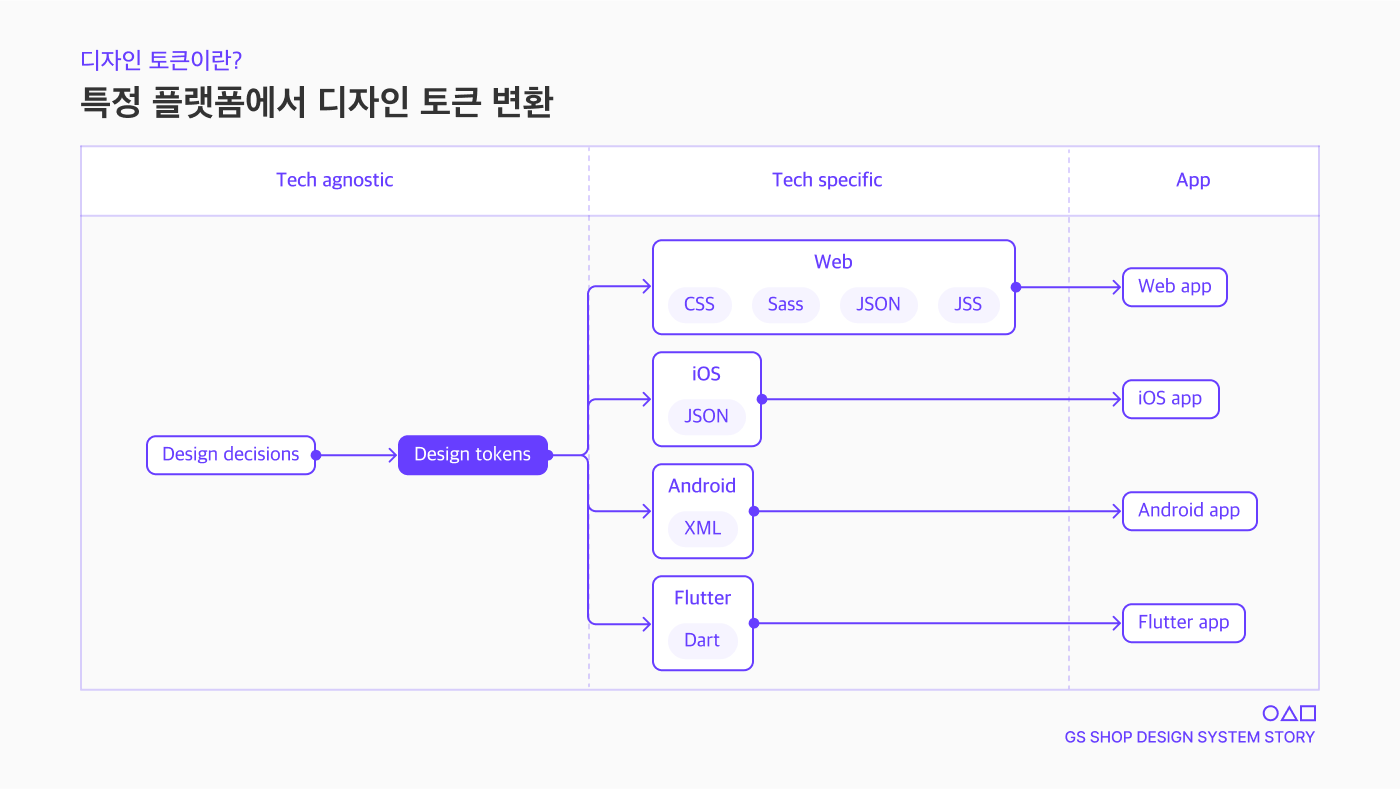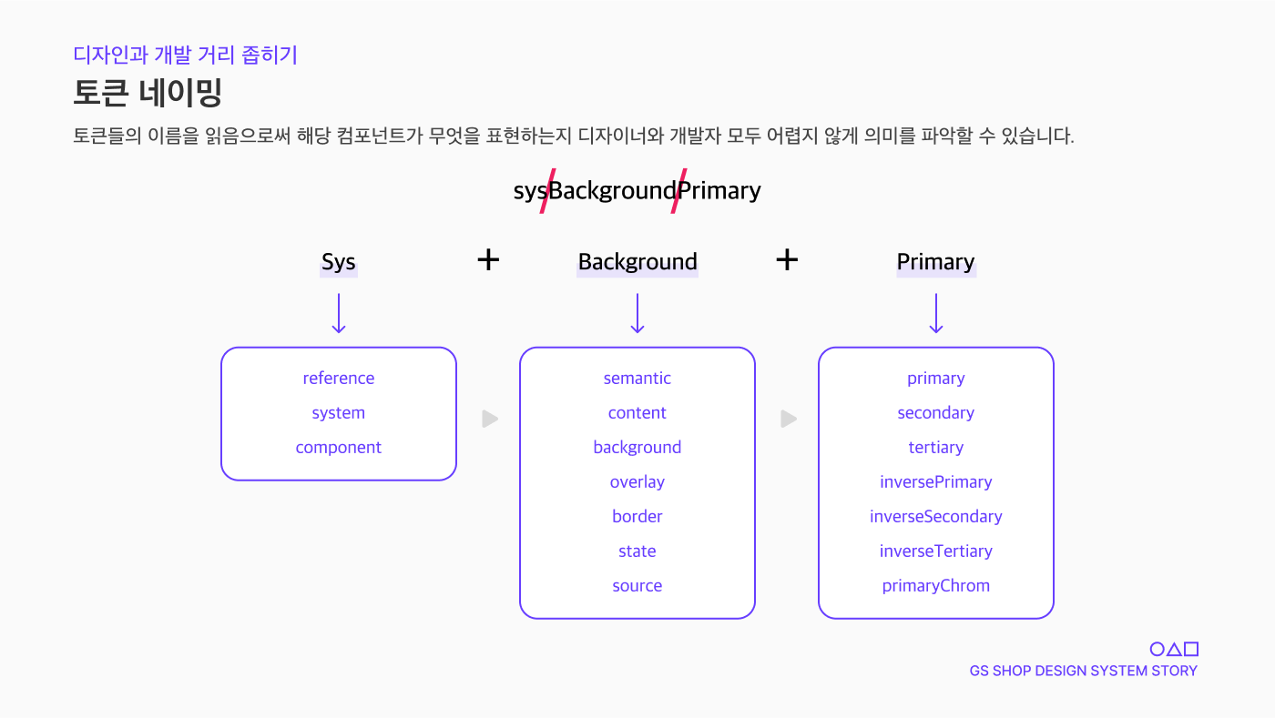 GS SHOP에서는 디자인 토큰을 세 가지로 분류하여 사용하고 있습니다.