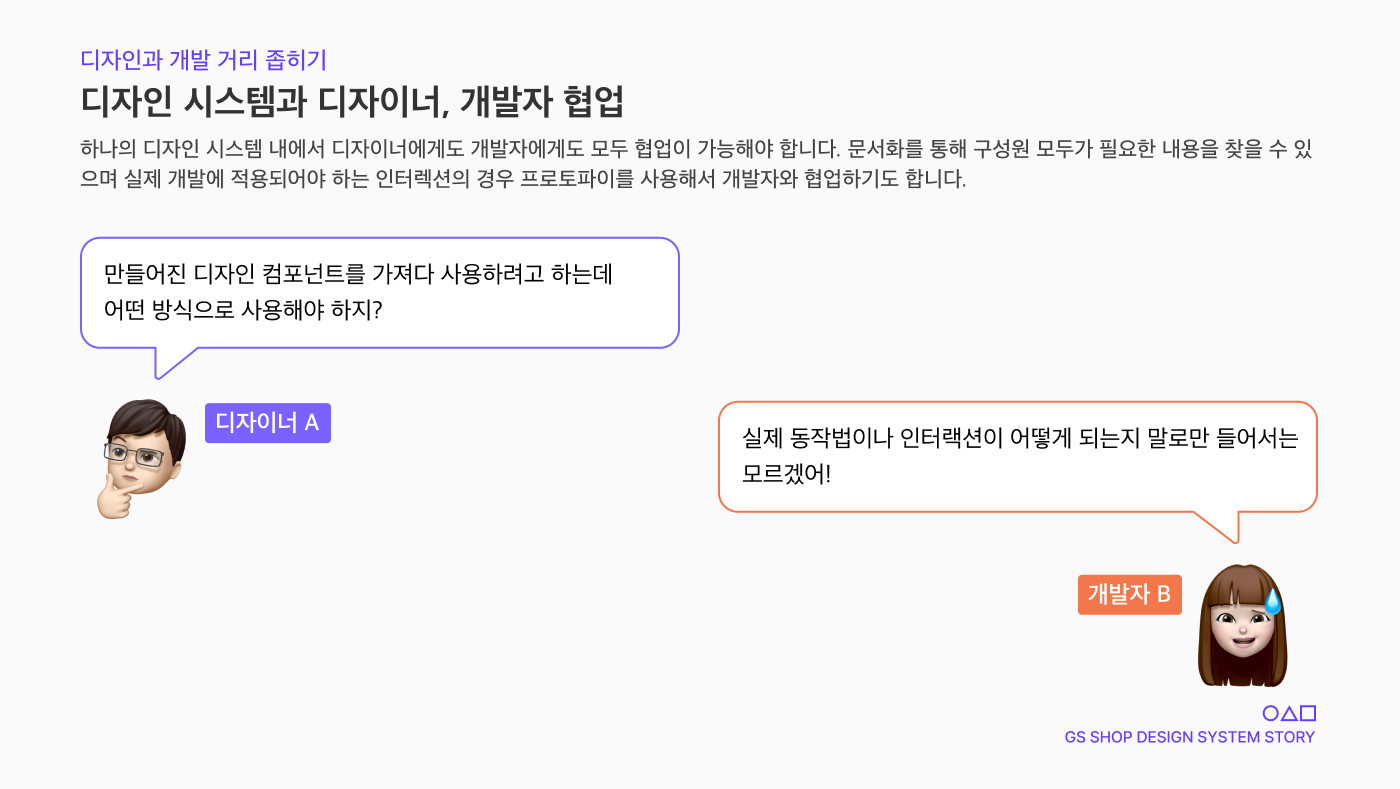디자인과 개발이 서로 다른 방향을 바라보고 있다면 디자인 시스템 구축의 의미는 퇴색되고 맙니다.