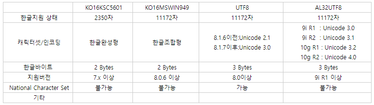 한글지원이 2350자까지 지원되는 2bytes 형식의 KO16KSC5601이라는 character set을 사용하고 있었고,