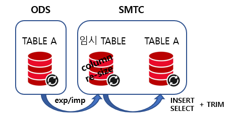 원래 ODS 때 컬럼 길이를 가진 백업 테이블을 만들고