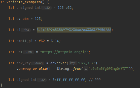 Rust에서는 `let`으로 변수 할당을 해주고 있습니다.