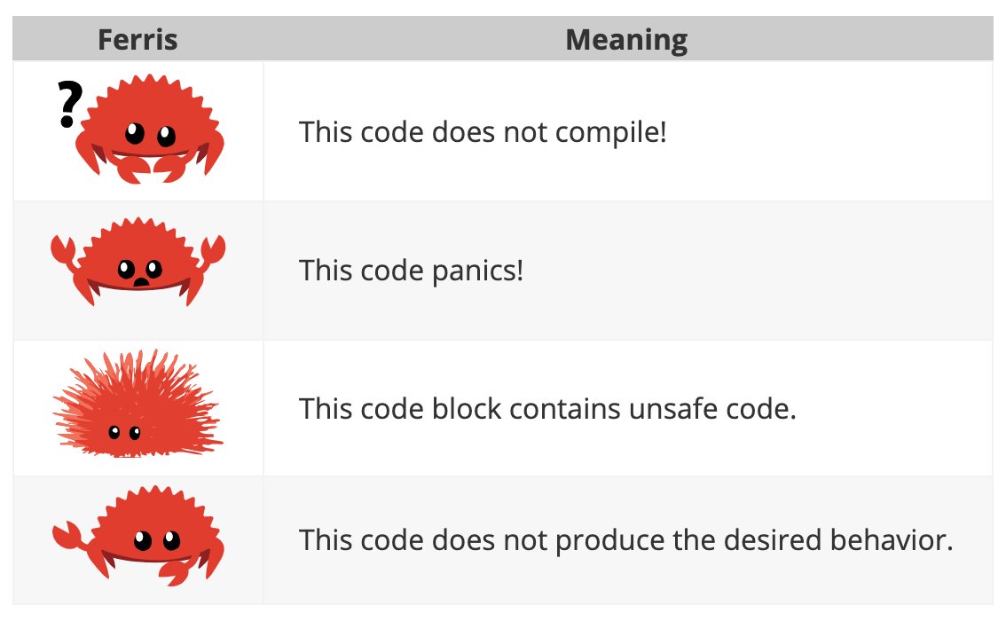 코드블록 오른쪽에 Ferris가 하나씩 있습니다.