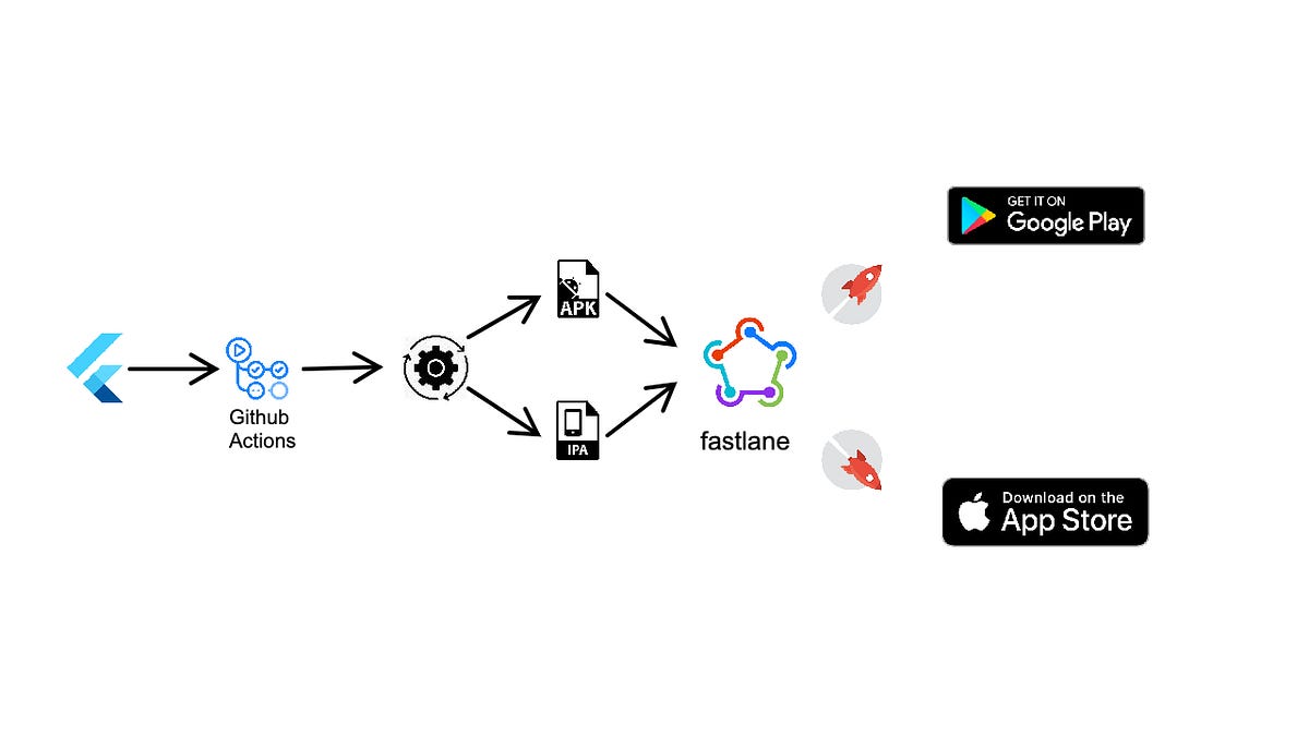 이 과정을 한 번 살펴보도록 하겠습니다. 개발자가 개발을 하고 메인 브랜치에 병합하는 등 GIT Action을 수행하면 이를 감지해서 빌드 파일을 생성하고, fastlane 같은 서드파티 프레임워크를 이용해서 구글과 앱 스토어에 게재하게 됩니다. 게재를 한다는 것은 결국, 앱에 버전이 생긴다는 것이고 한 번 생성된 앱 버전은 영원히 소스를 고칠 수가 없습니다. 비록 새로운 버전을 게재하여 개선할 수는 있으나 한 번 올라간 버전은 영원히 남게되는 것입니다. 즉, 앱 소스를 웹처럼 즉각적으로 원격으로 수정할 수 없다는 리스크가 발생하게 됩니다.