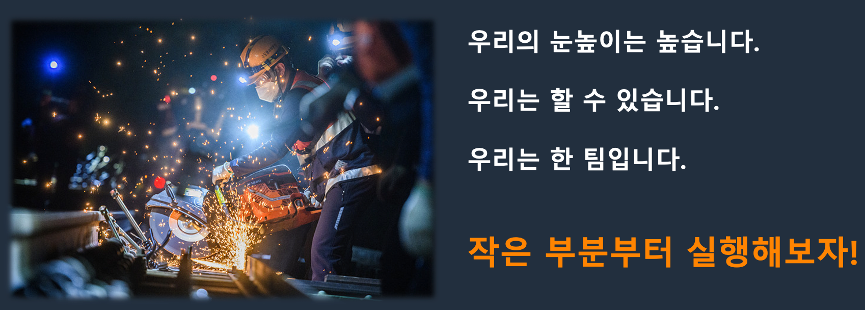 제가 좋아하는 말이고, 방향성으로 멤버분들에게 지속적으로 공유하는 말로, 우리가 일을 하는 현실적인 목적은 퇴근 시간을 준수하여, 개인의 행복도 찾아가자 인데, 일하는 방식의 변화로 인해, 계획 된 퇴근 시간을 준수 할 수 있게 되었다고 생각합니다.