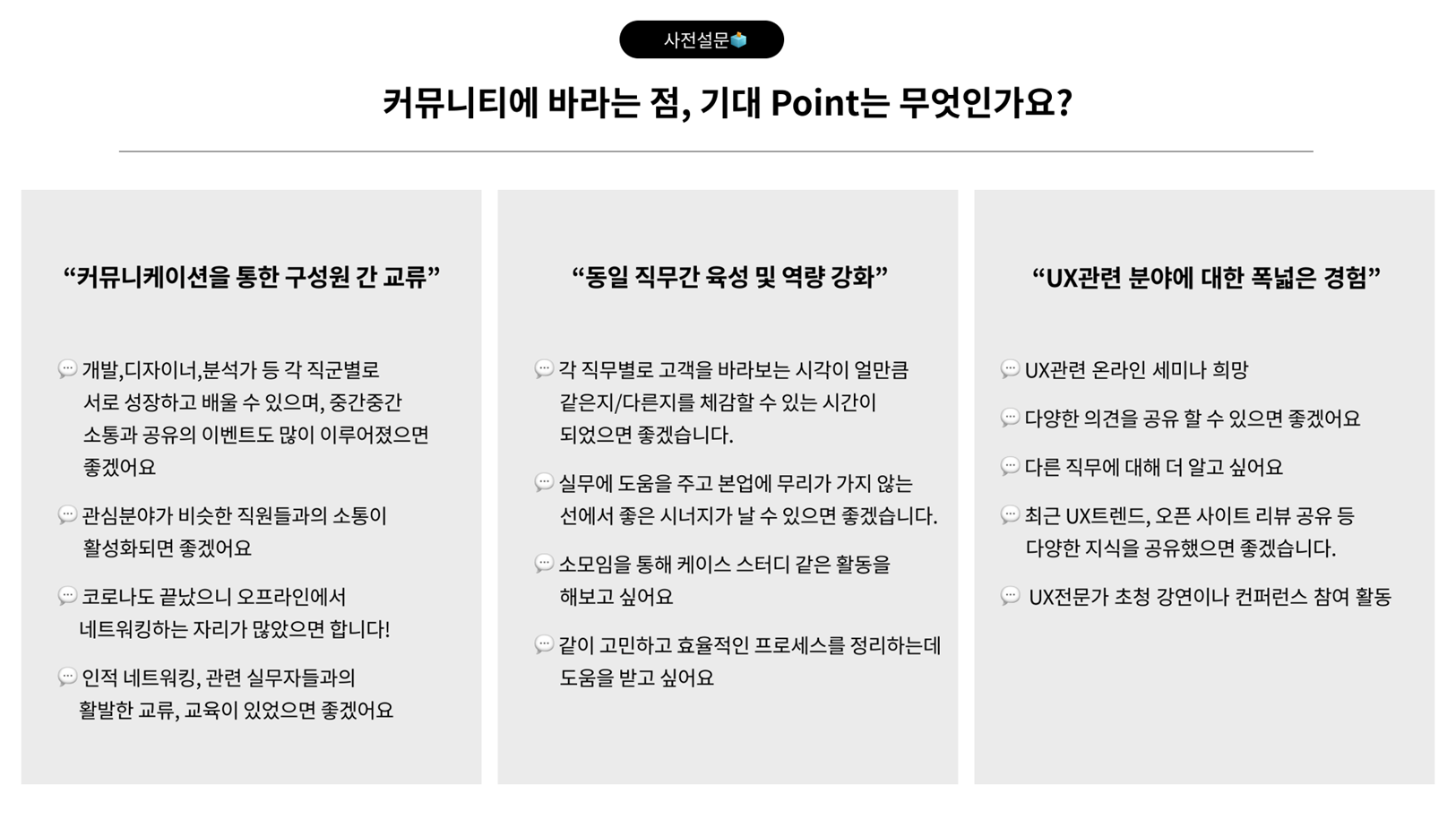 커뮤니티를 통해 어떤 점을 기대하는지도 들어 볼 수 있었습니다 🙌